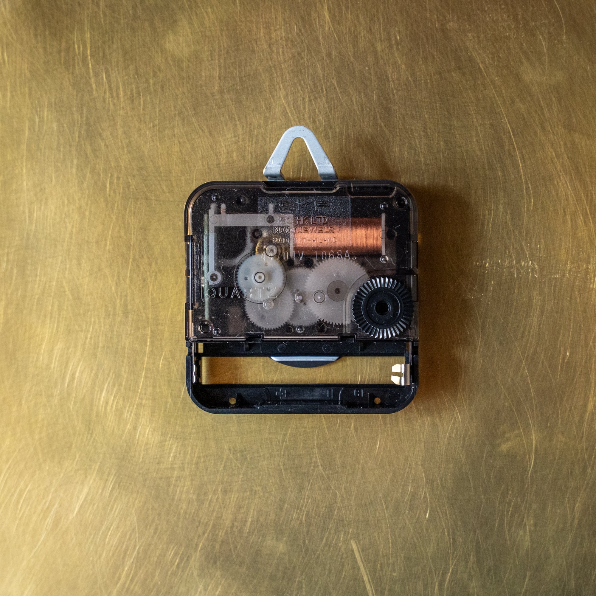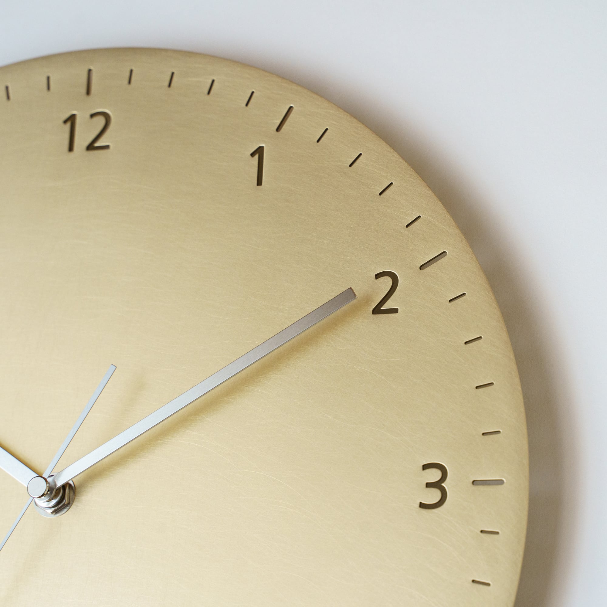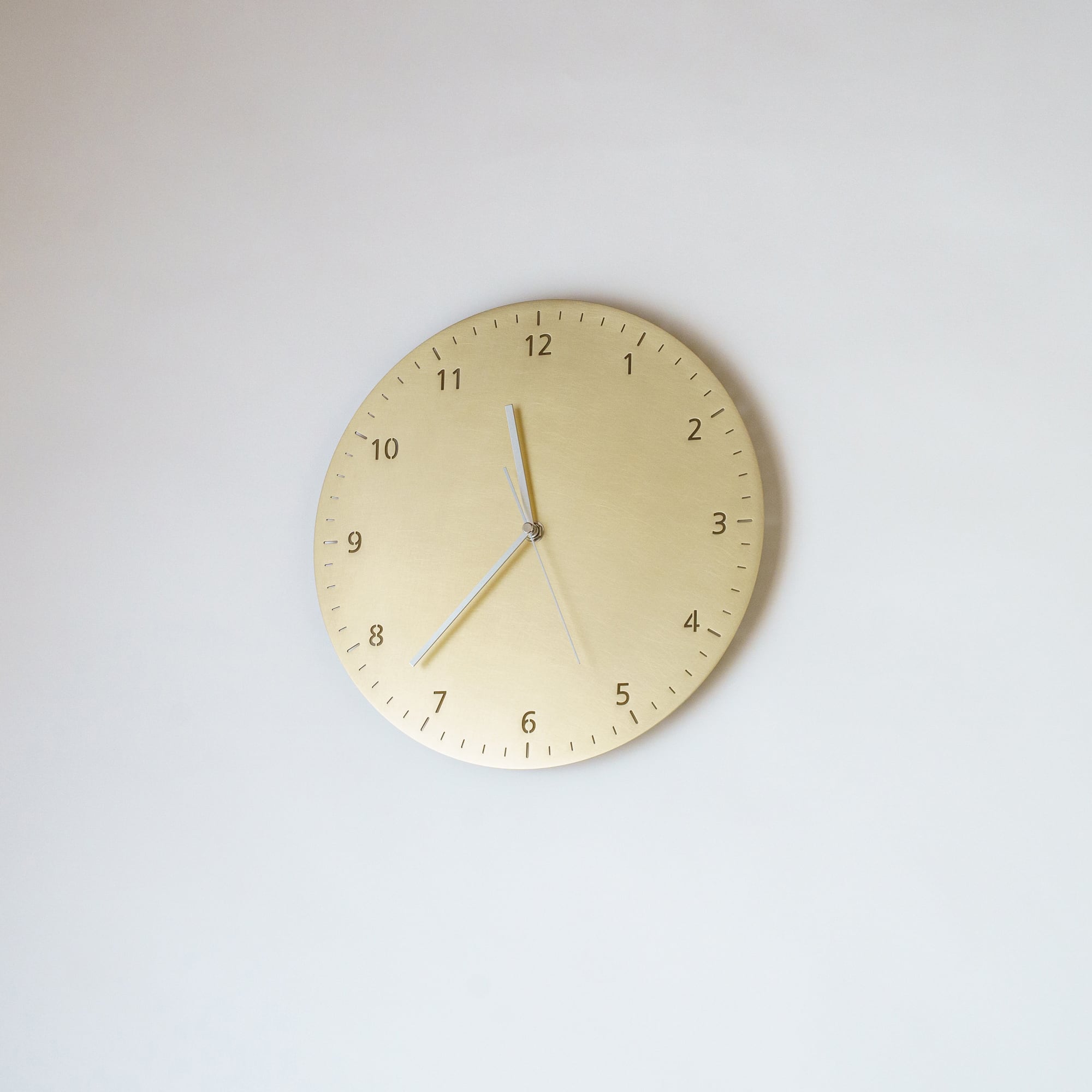 この時計では色合いの変化をむしろ金属特有の美しい現象と捉え、クリアー塗装を施していません。そのかわり蜜蝋という蜂が作り出す自然由来のロウを使用して表面処理を行い、真鍮の魅力が最も発揮される表情に仕上げています。