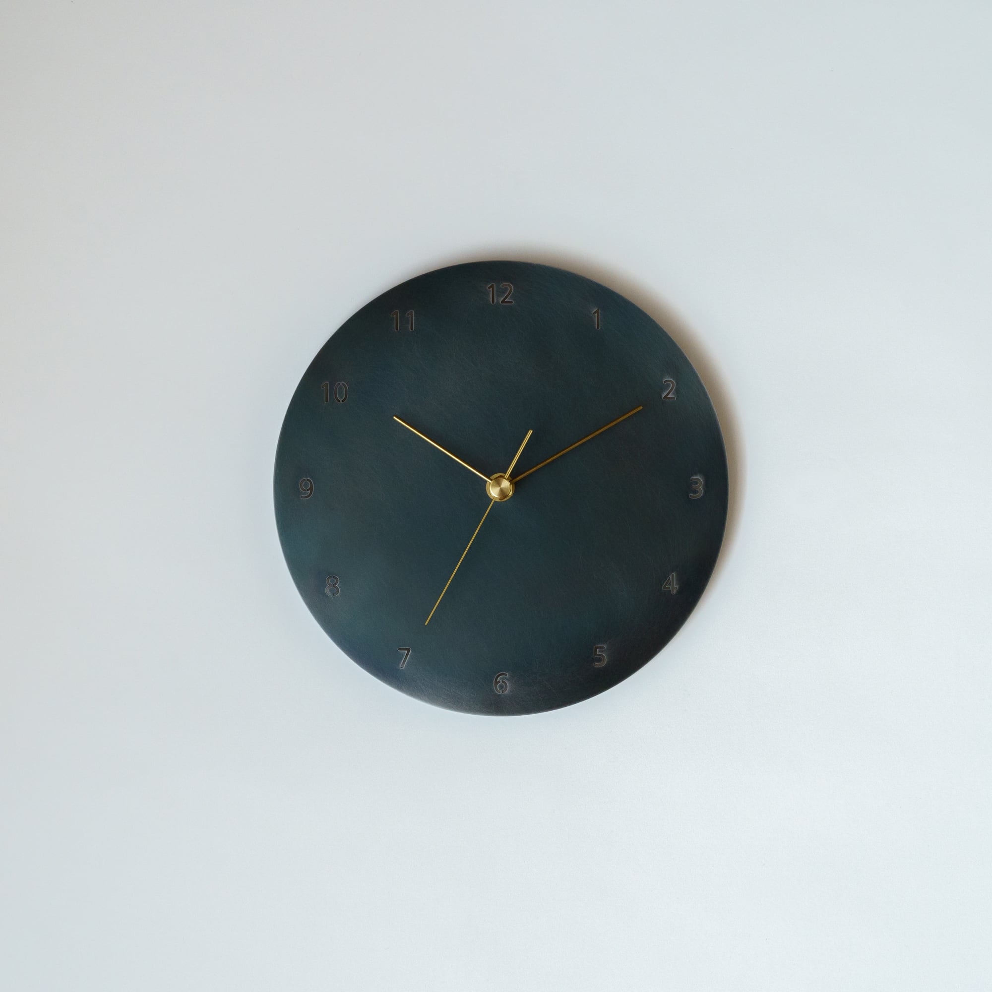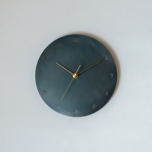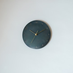 鉄の板と針だけのミニマルウォールクロック。数字入りタイプの小ぶりな時計(文字盤直径22cm)です。