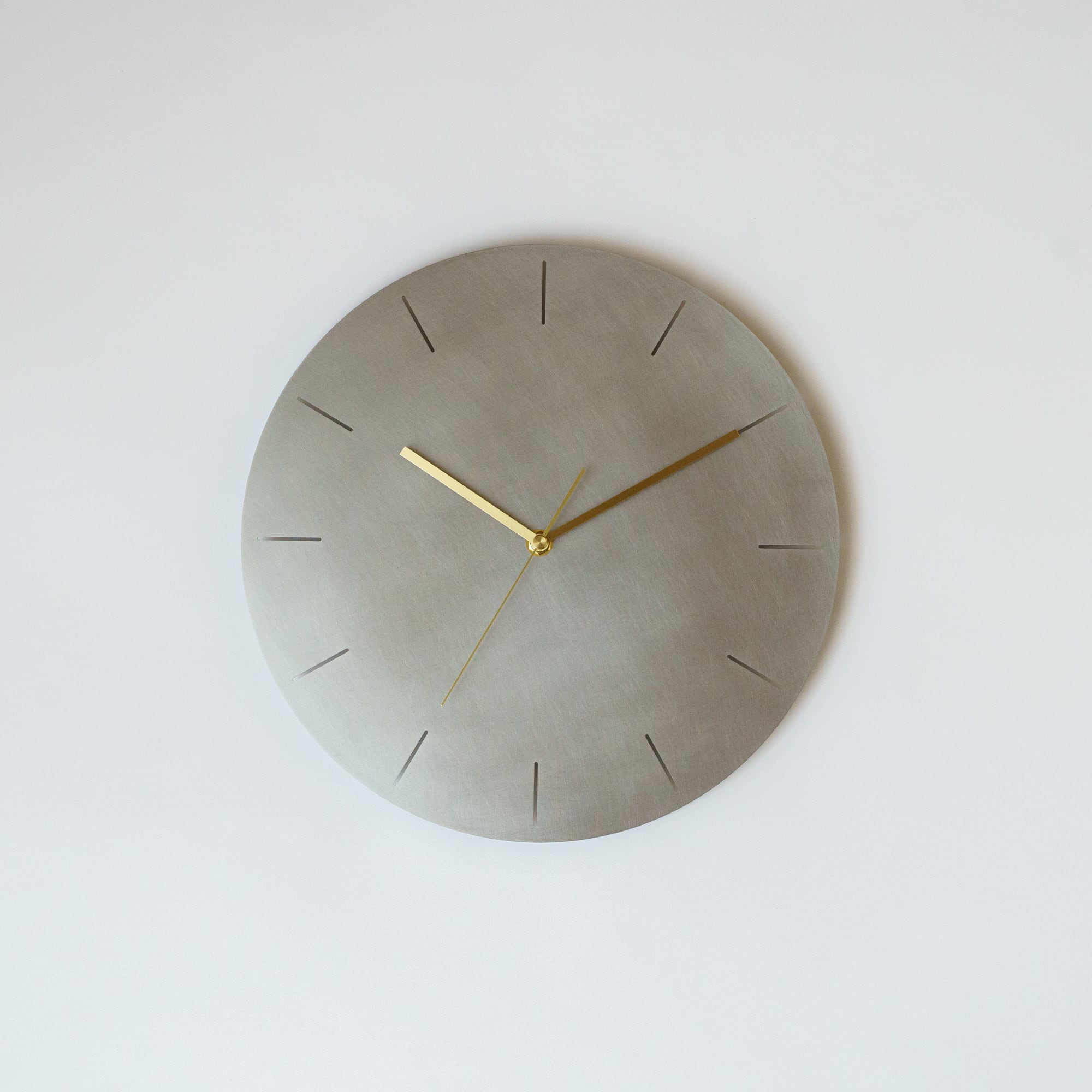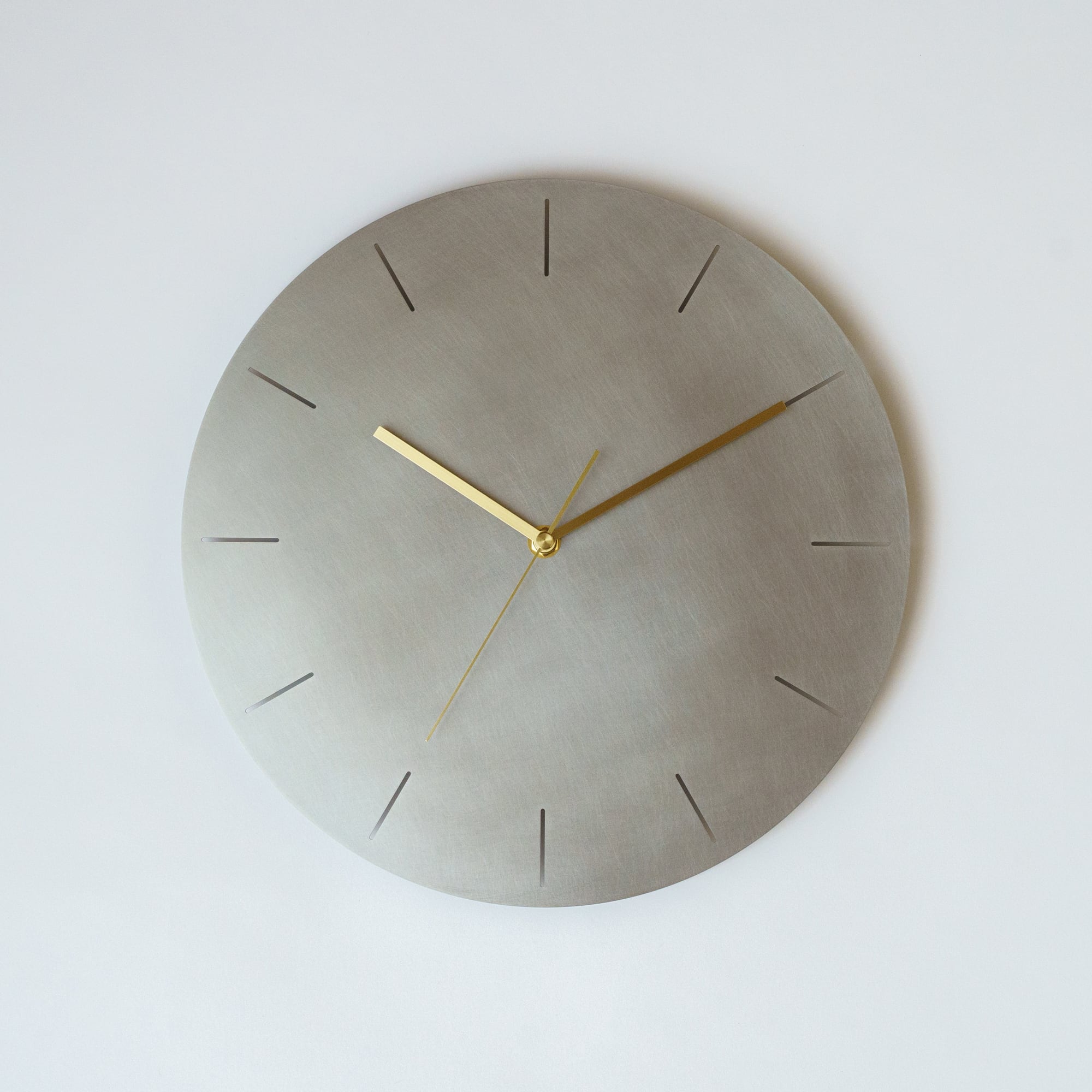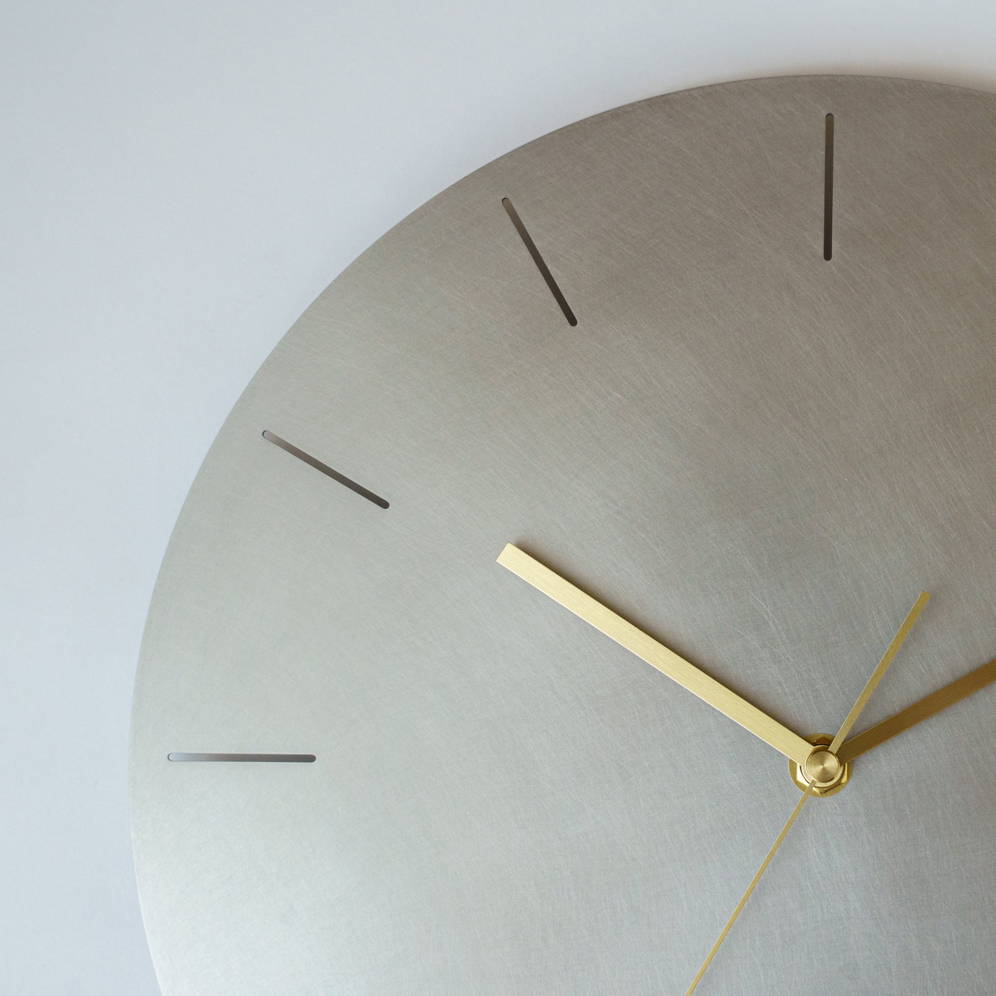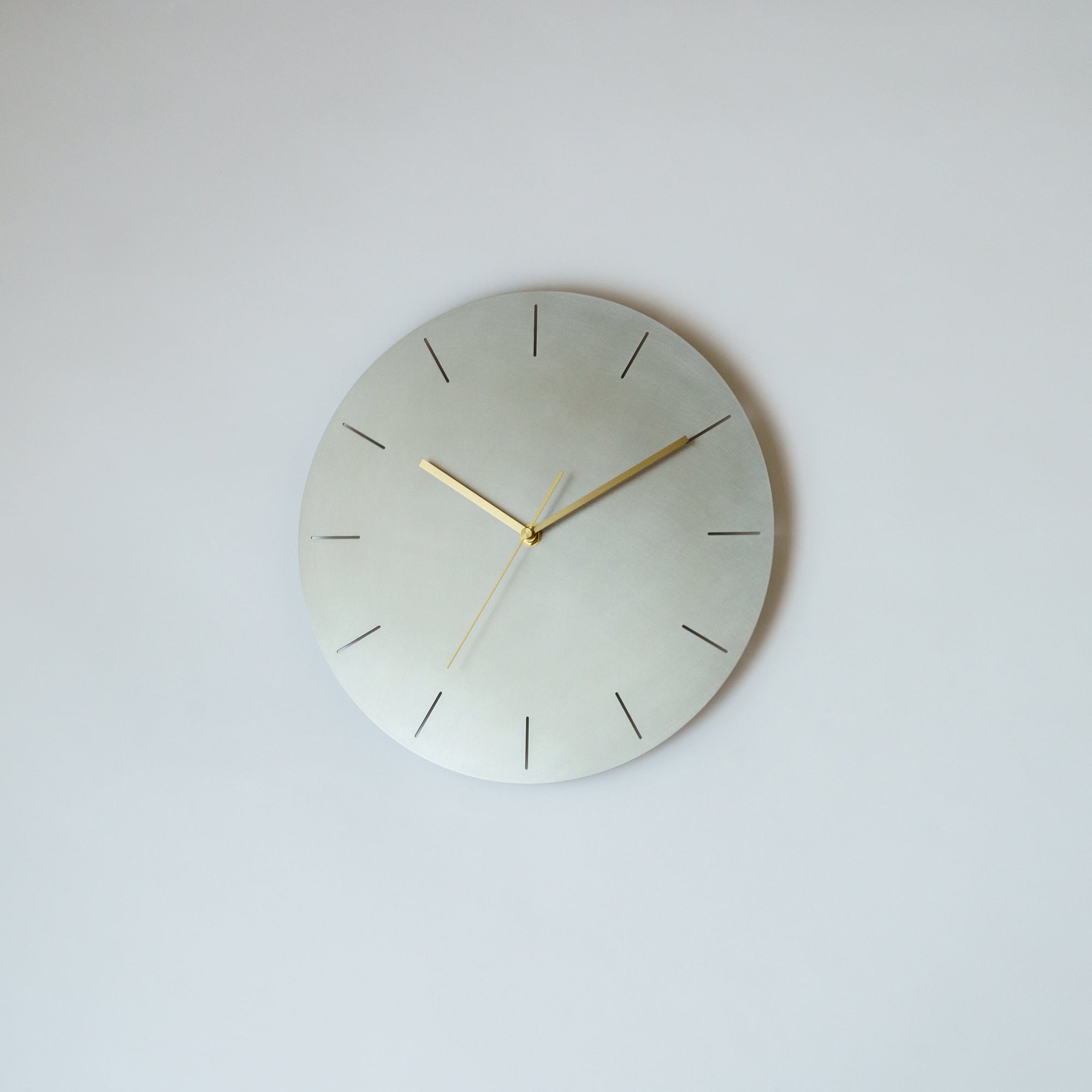 ステンレスの板と針だけのミニマルウォールクロック。しるし入りタイプの大きな時計(文字盤直径30cm)です。
